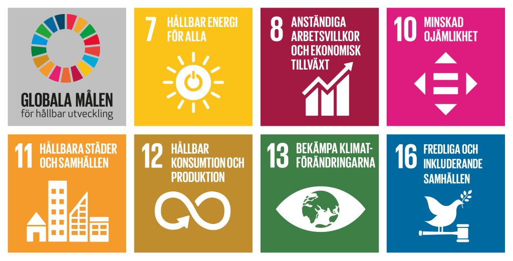 Baserat på en väsentlighetsanalys har vi identifierat sju av FN:s globala mål som är särskilt relevanta för vår verksamhet. Dessa speglar både våra möjligheter att påverka i positiv riktning och de områden som är viktigast för våra intressenter, från investerare till boende och samhällspartners. Genom att fokusera på dessa mål kan vi bidra till en mer hållbar framtid och samtidigt stärka affärsnyttan i vår verksamhet.